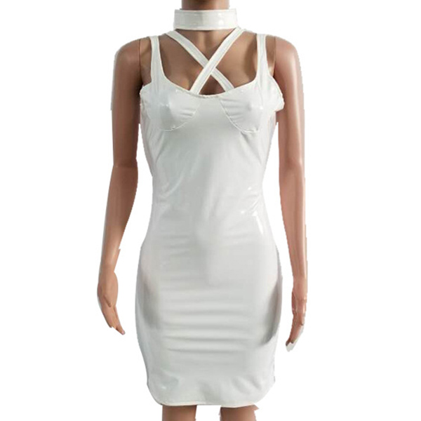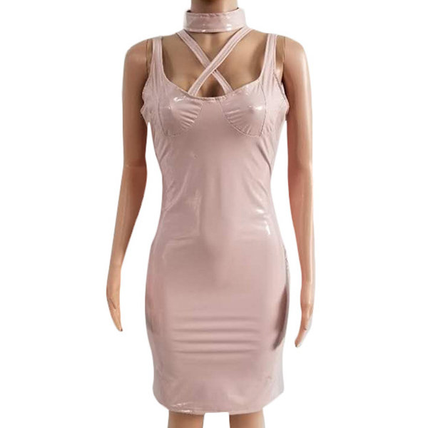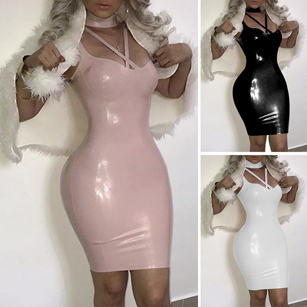 No one can be more alluring than you once you slip into this PU leather dress. Solid color style,designed with