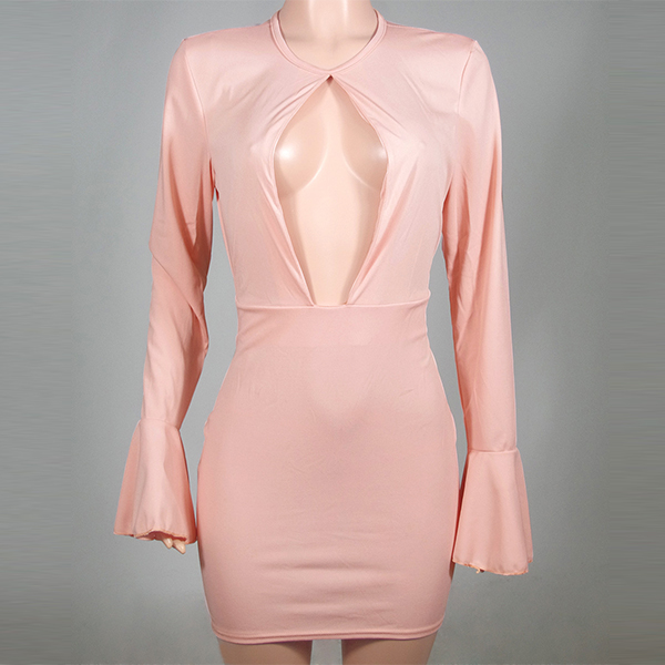 designed with trumpet sleeve,round neck and a fit silhouette,elegant and charming. In addition,the hollow out design