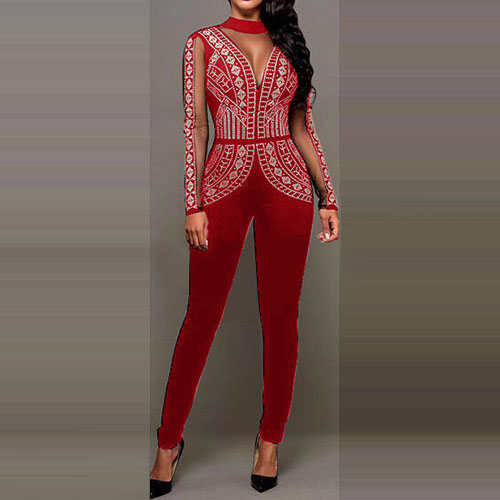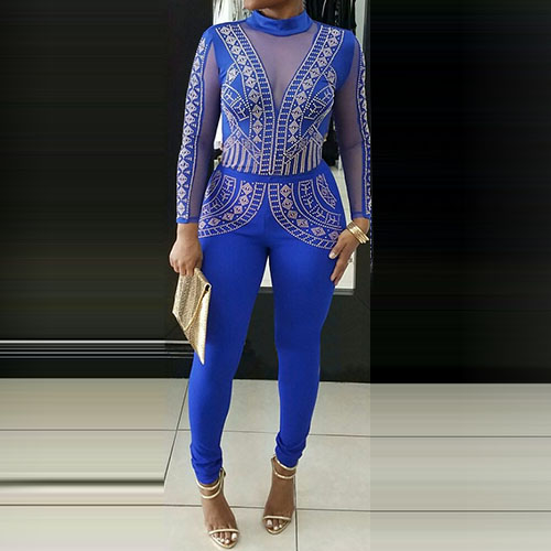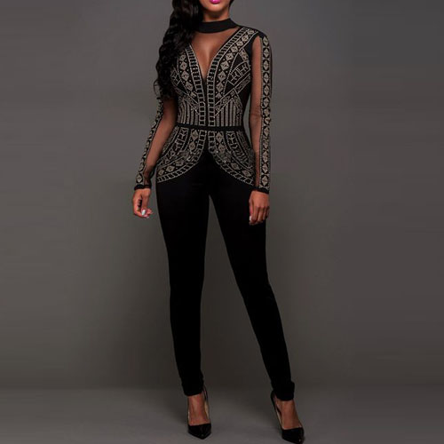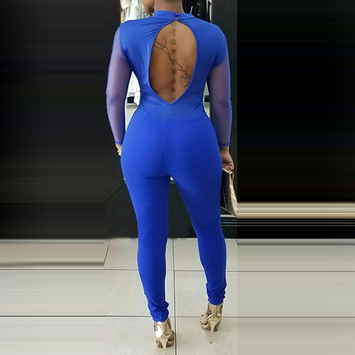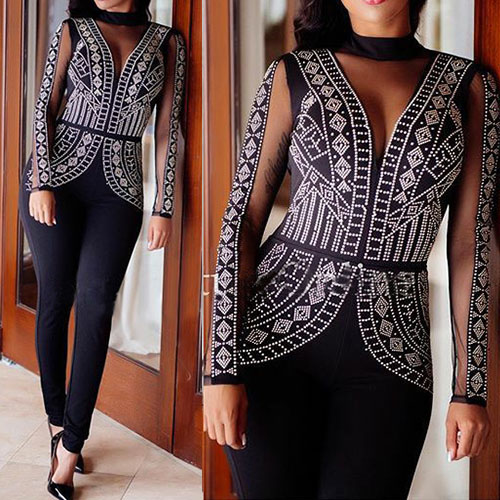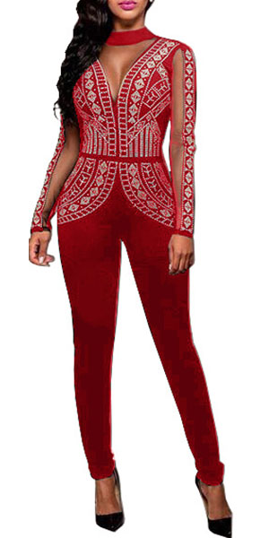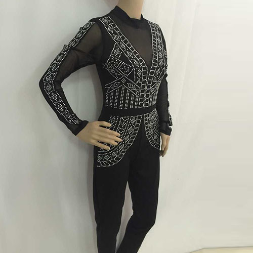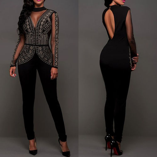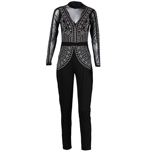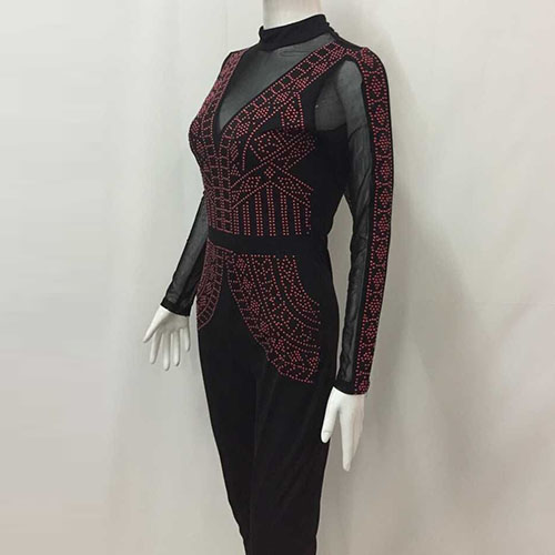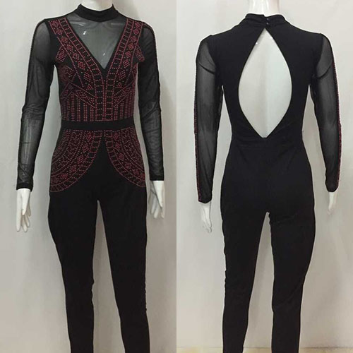 long sleeve and backless design, accompanied with perfect hot fix rhinestone technology, this jumpsuit would