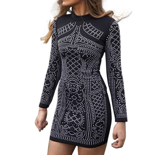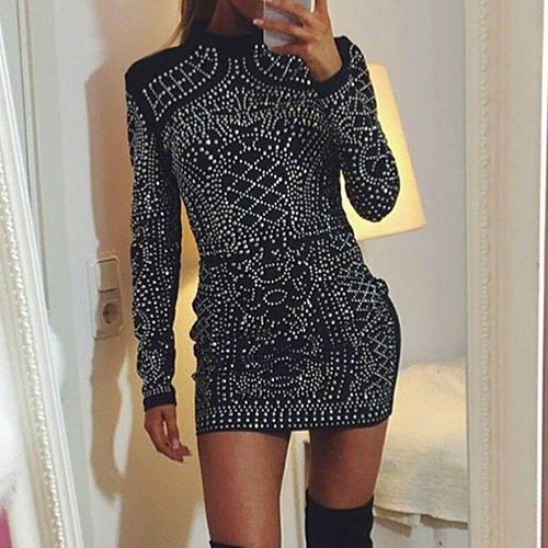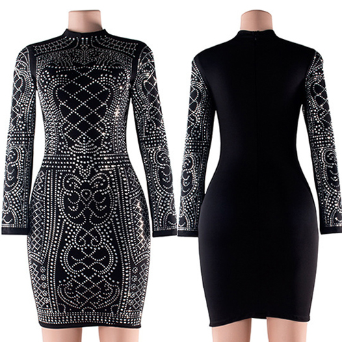 eye-catching look. Complemented with round neck, long sleeve and slim fit design, this dress would