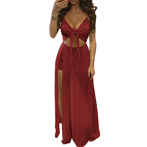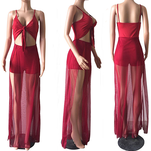 deep v-neck,gauze splied hem with slit hem,and its knotted design at front make this piece look so seductive and