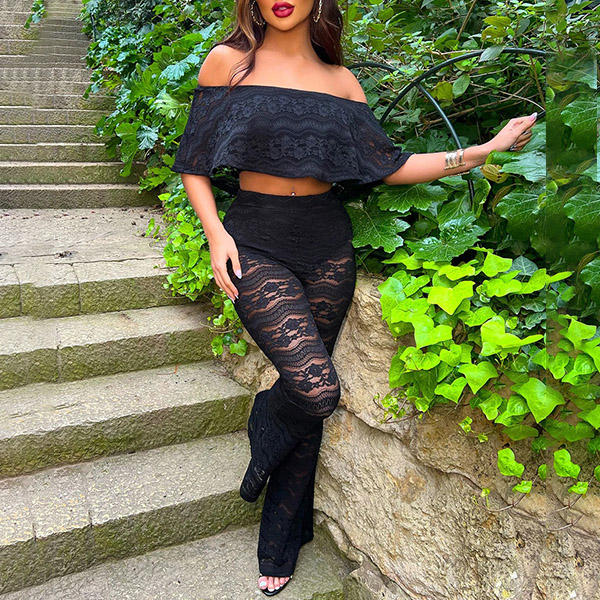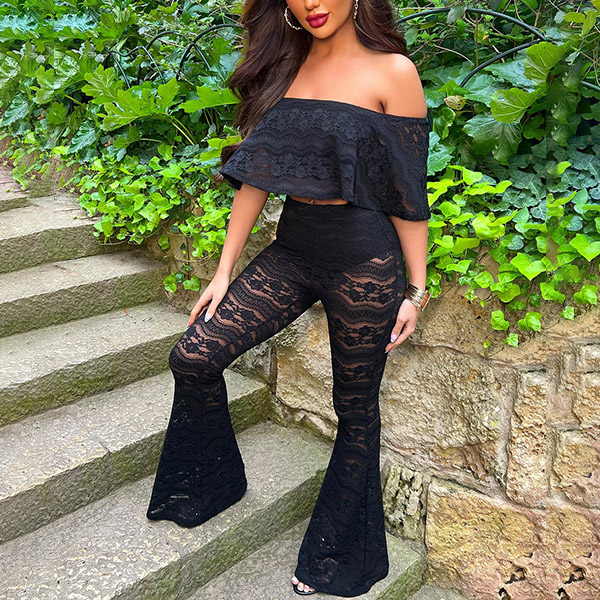 It is not strange that why all the eyes are focused on you when you wear this two-piece set. Solid color style,including alace bandeau top and a high waist see-through lace flared pants,this two-piece set will make you be the most charmingand stunning goddess. When you throw yourself into this two-piece set,a beautiful landscape will come into being!