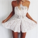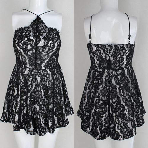 Take look this dreamy lace playsuit. It features allover floral lace, halter structure and high-rise.