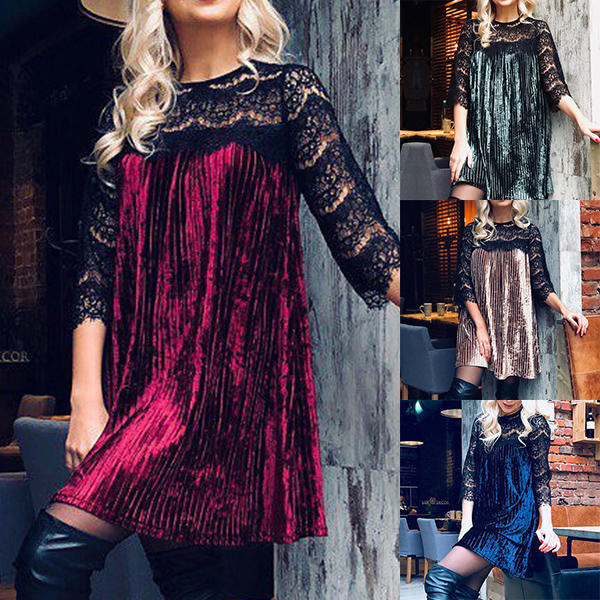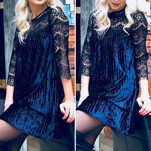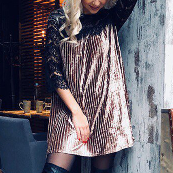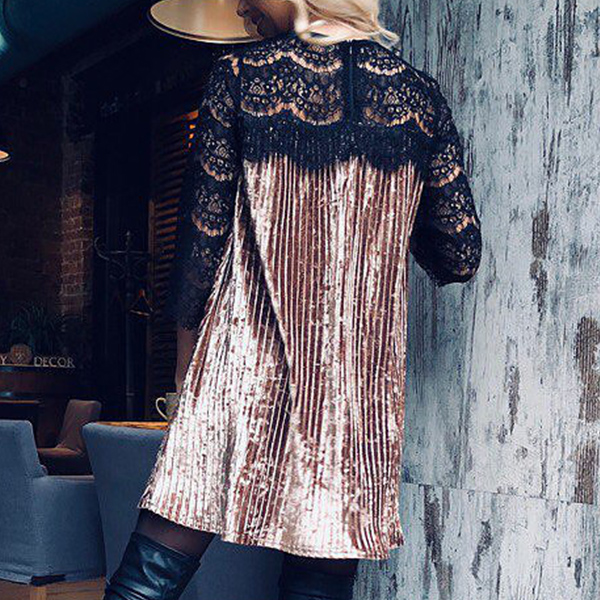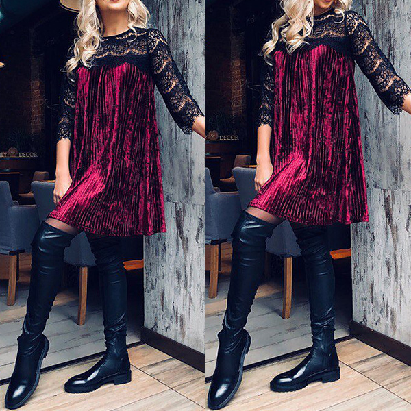 Cozy and effortless stylish,this dress is just what you need on a weekend gathering. The lace spliced