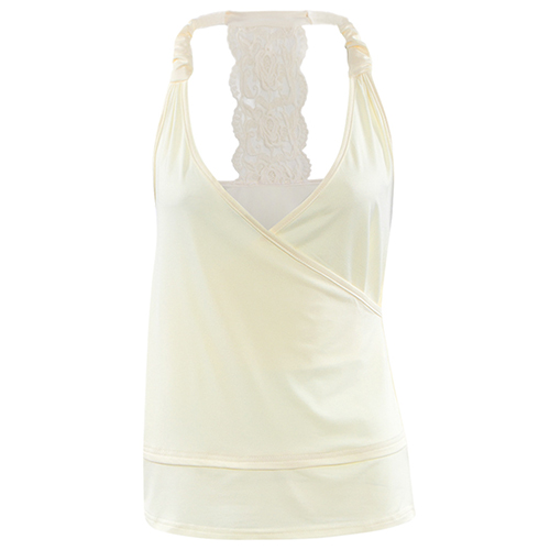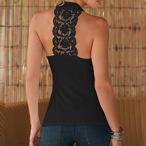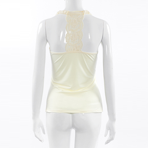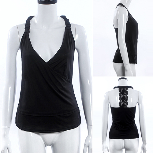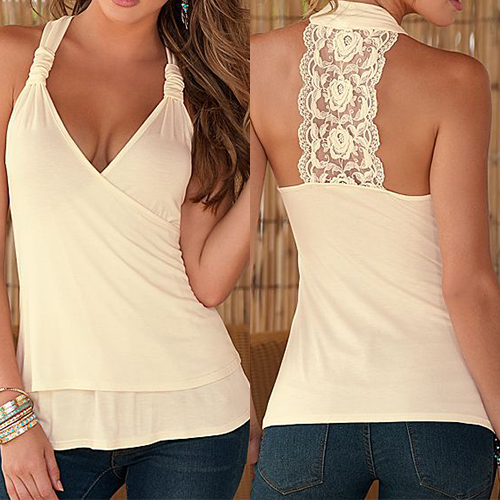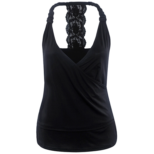 Solid color style,its lace spliced,backless and deep v-neck design makes this tops