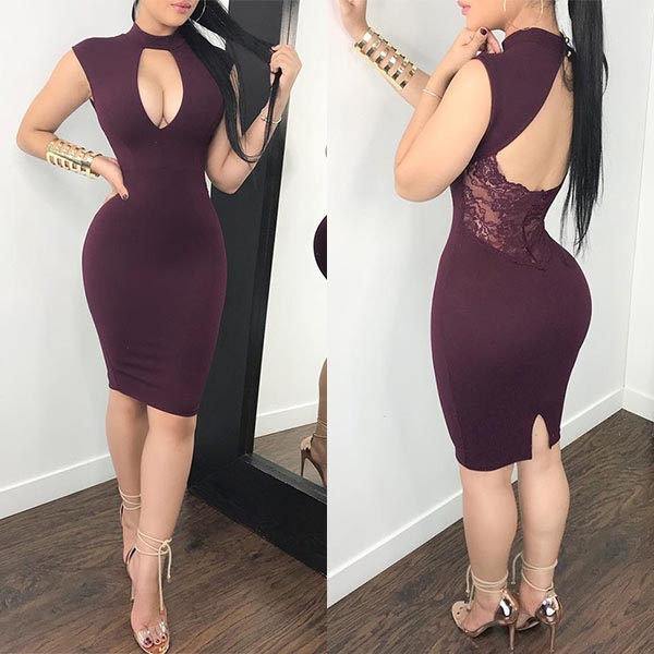 on this dress. Its backless,hollow out and lace spliced design make this piece look so alluring,while the tight