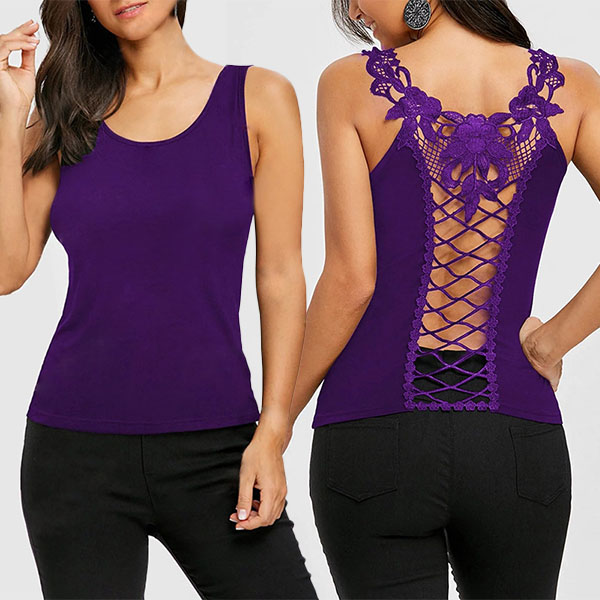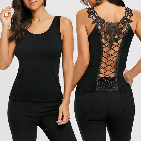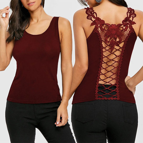 You can have a cozy yet feminine style in this tank top. Solid color style,the backless and lace spliced