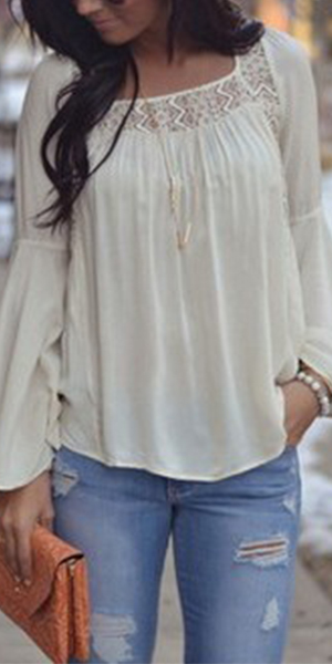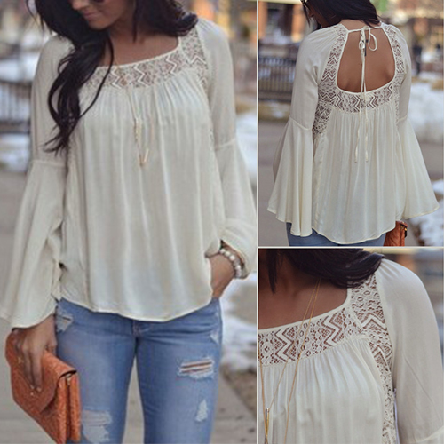 Lace spliced style, featuring bell sleeve and backless design, which can bring you a sexy and chic look.