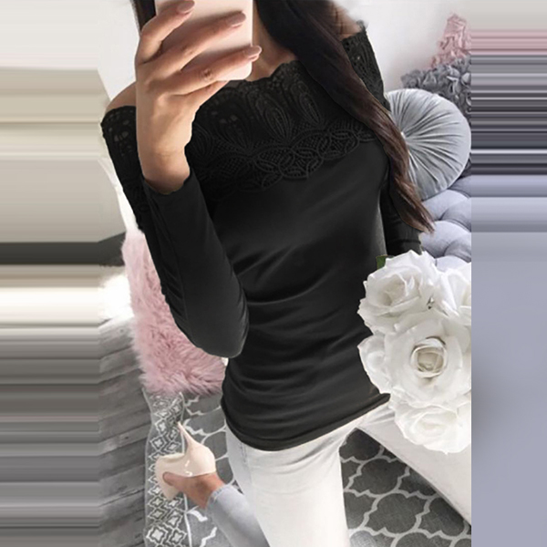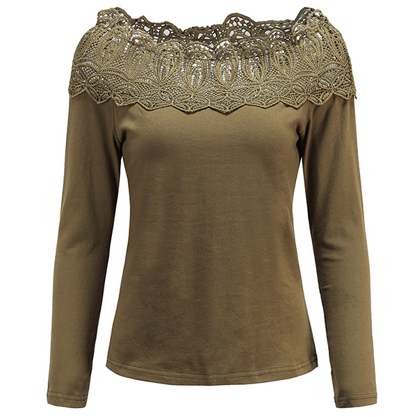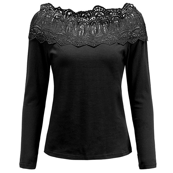 You can trust in this t-shirt to give you a cozy yet feminine style. Solid color style,the lace spliced boat neck