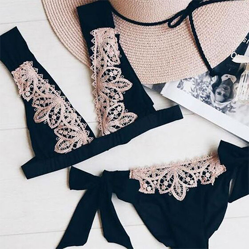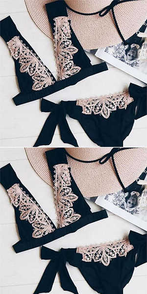 with bowknot and lace spliced details,this bikini set can make you easier stand out in the crowd.