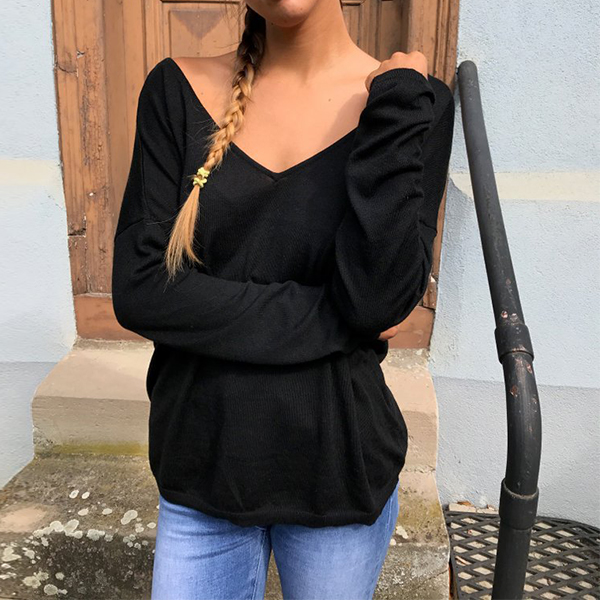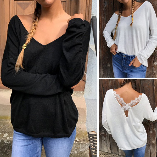Cozy yet sexy,this is what this t-shirt can bring for you! Solid color style,its stunning details like v-neck,crossover