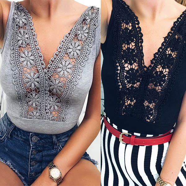Catch the envious eye of everyone when you wear this sleeveless bodysuit! The hollow out lace spliced and