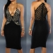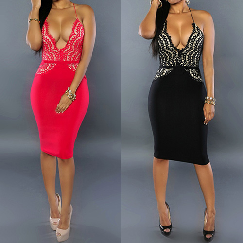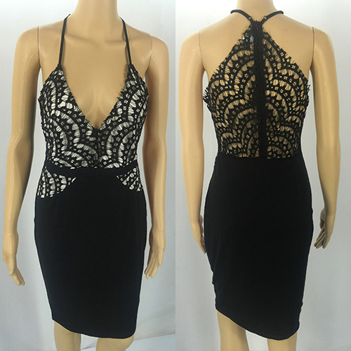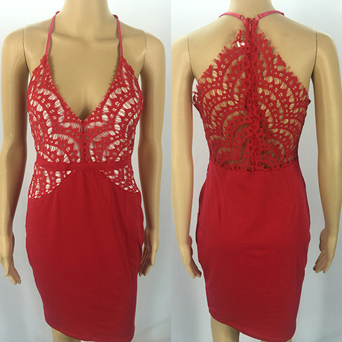 Sling style,designed with lace spliced,a deep v-neckline and a fit silhouette,this dress is