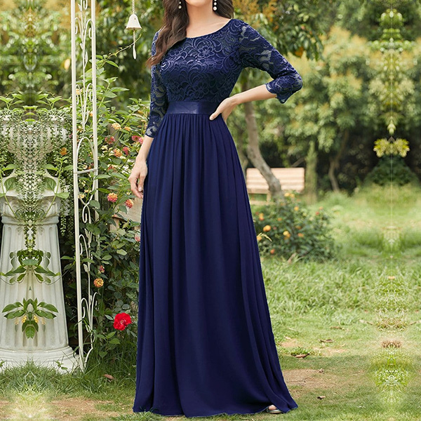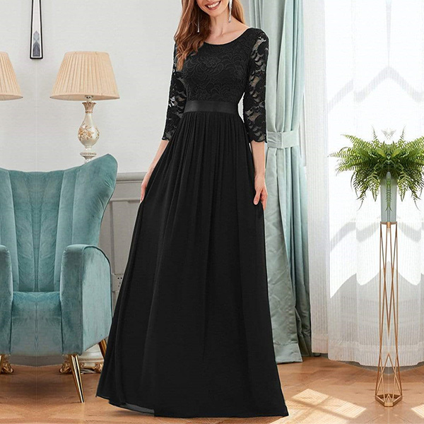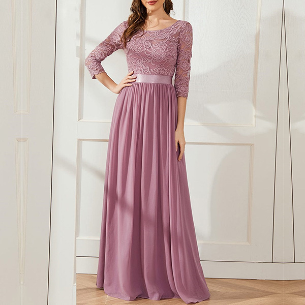 Sexy Lace Spliced Half Sleeve Round Neck Party Dress