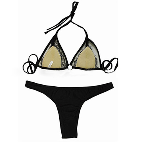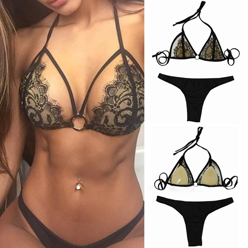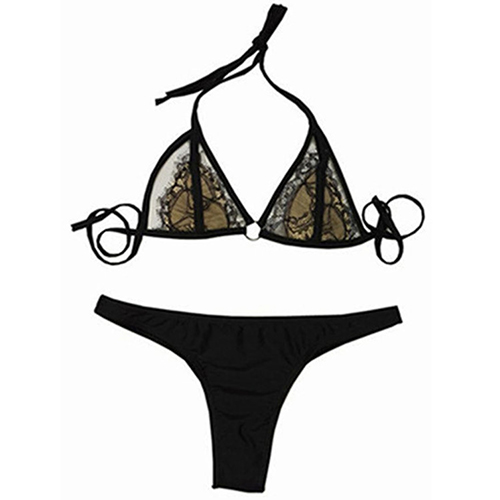 When walking on the beach with this bikini set,all eyes would be focused on you. Its lace spliced design