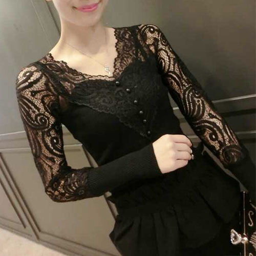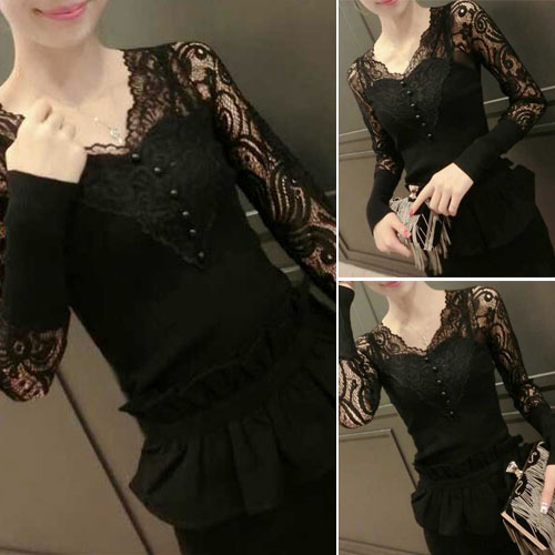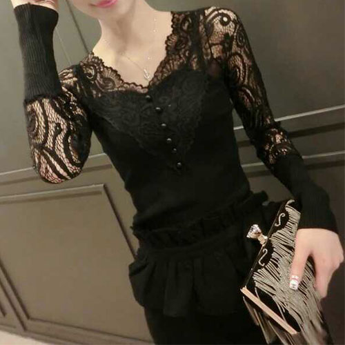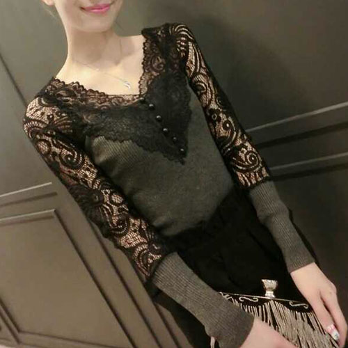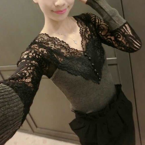 We recommend a beautiful sweater for your autumn and winter. It features lace spliced, hollow out,