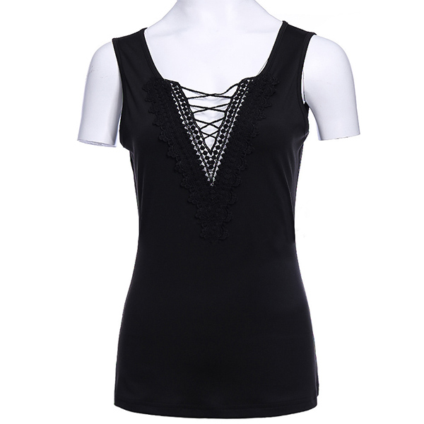 style,the lace spliced lace-up v-neck design makes this piece look so appealing and sexy. It is perfect for matching