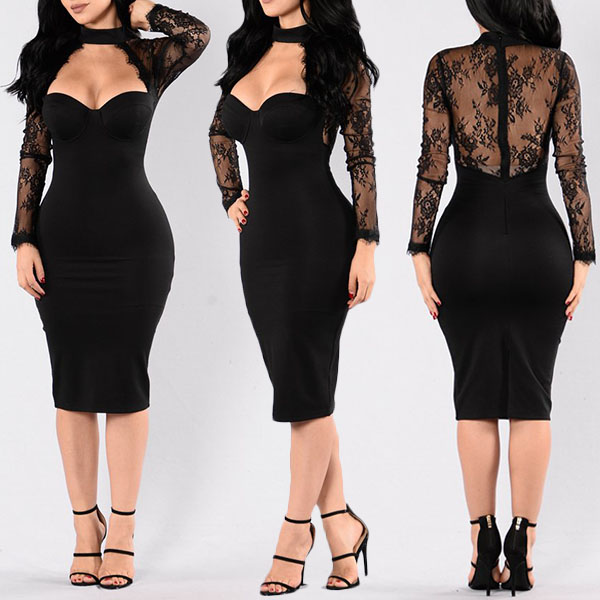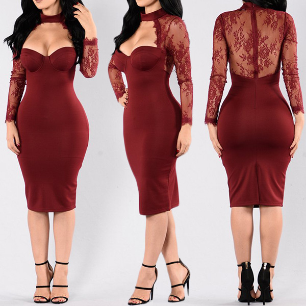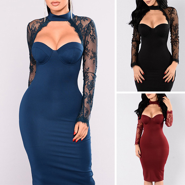 you be the focus. The bodycon silhouette design can sketch out your seductive,while the lace