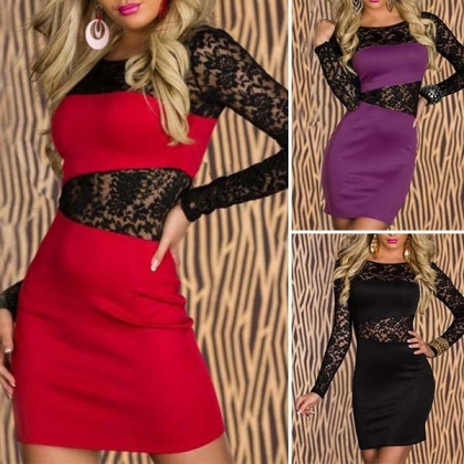 the lace spliced design adds its charm. Sexy and flirty,this dress is perfect fit for your night events.