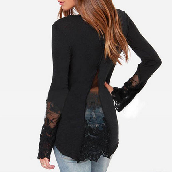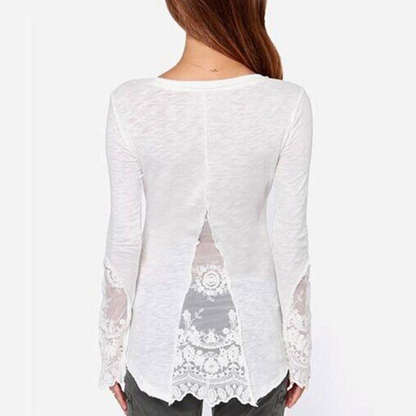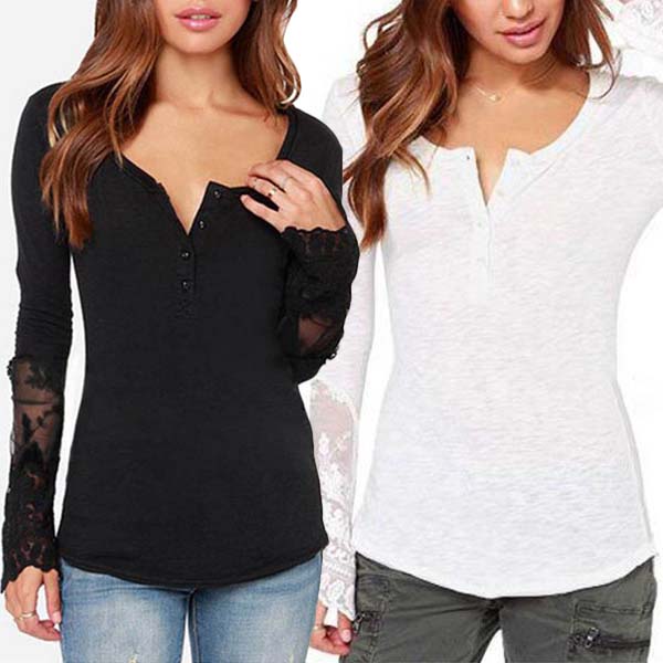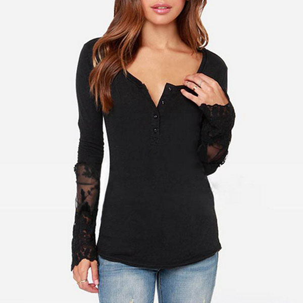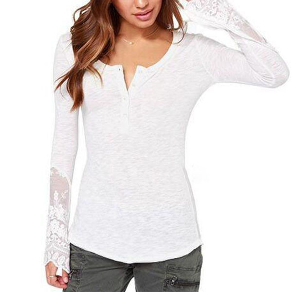 round neck and a fit silhouette,this t-shirt also can showcase your perfect curve. Moreover,the lace spliced