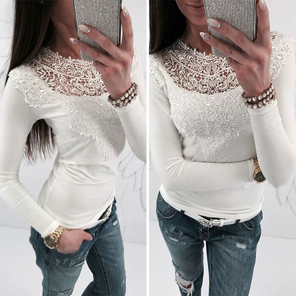 crafted from soft and breathable fabric,this t-shirt can promise you a comfortable day. And the lace spliced