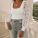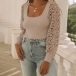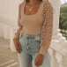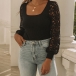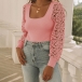 Sexy Lace Spliced Long Sleeve Square Collar Slim Fit T-shirt