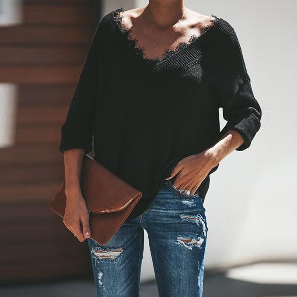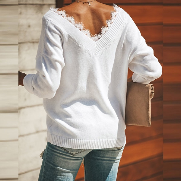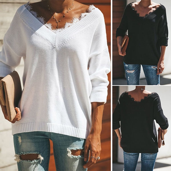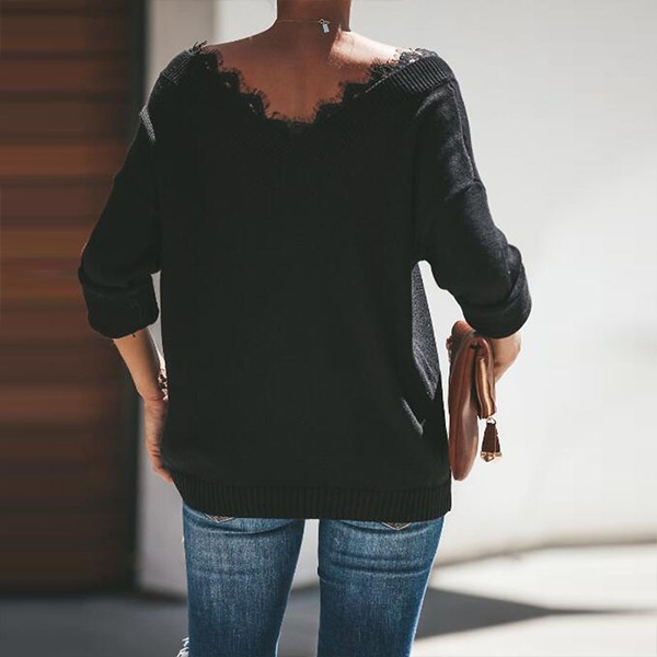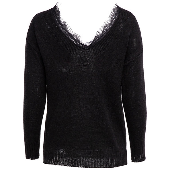 v-neck and lace spliced design will showcase your feminine appeal. Stay warm and comfy in