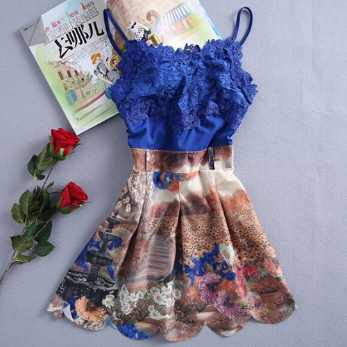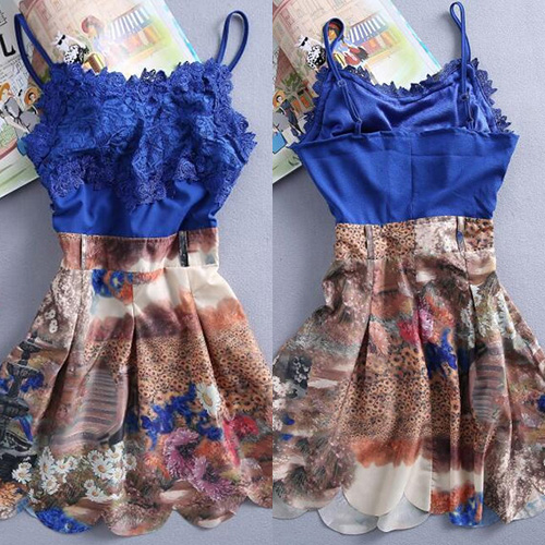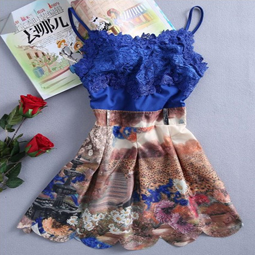 this dress. Sling style,its lace spliced and floral print hem makes this piece look so feminine.