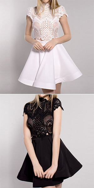 Save this sexy and charming dress for post-work cocktails and dinner dates. Lace spliced style,