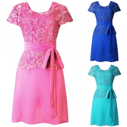 with a solid color,with short sleeve,round neck and a fit silhouette,this dress can showcase your perfect curve.