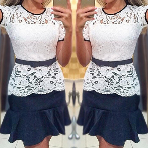 Lace spliced style makes it look more feminine,and its fishtail hem design makes it more elegant and charming.
