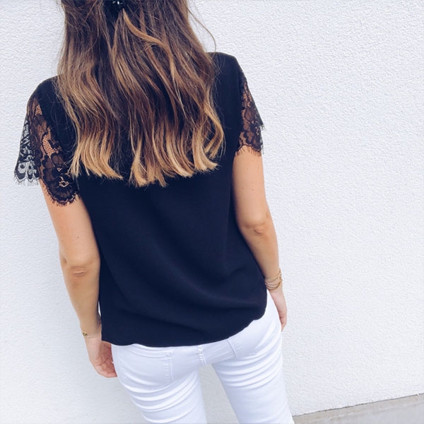 This wonderful top comes with a solid color,the lace spliced and v-neck design will lend a dash of sexy