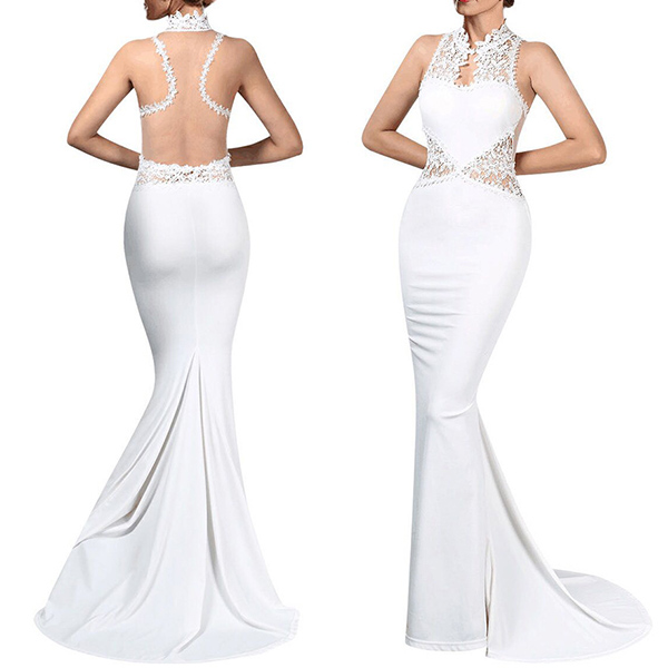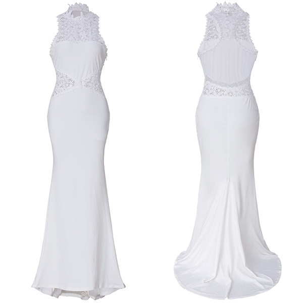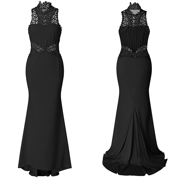 gauze and lace spliced design make this piece look so sexy and alluring,while the floor-length hem