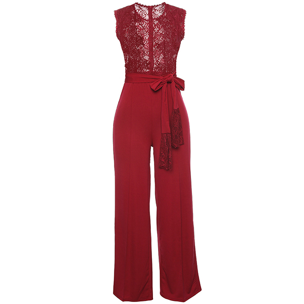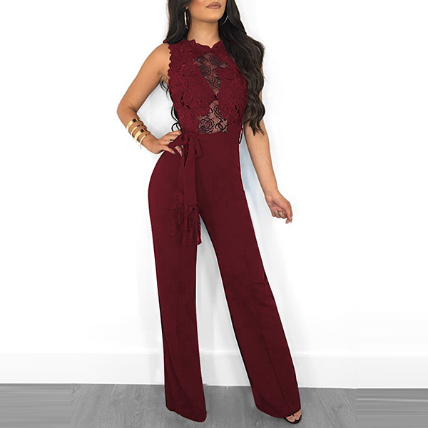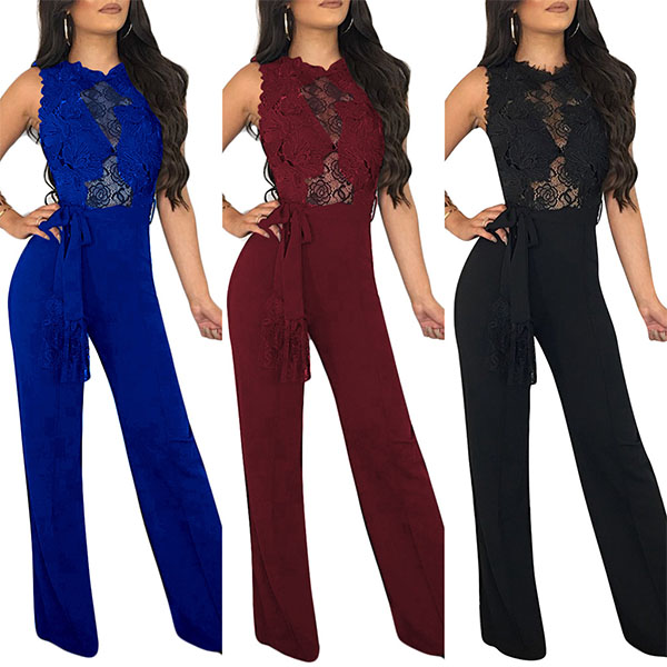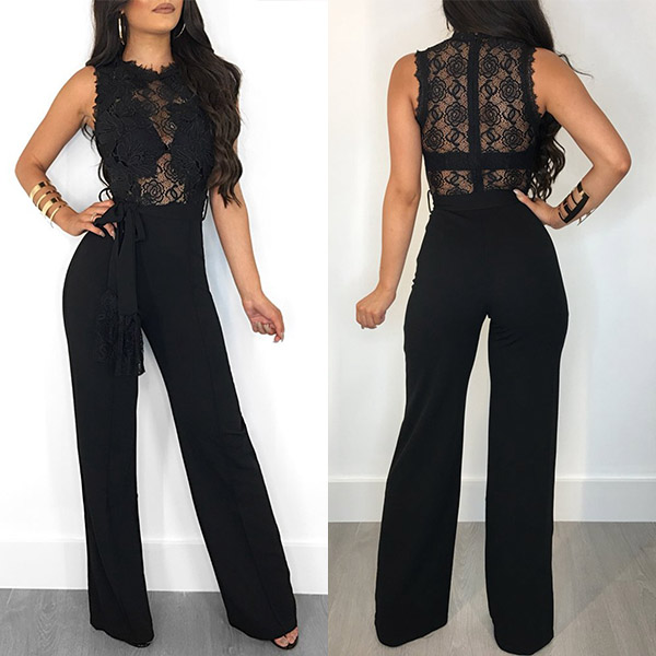 Look exceptionally stunning when you slip into this jumpsuit! The hollow out lace spliced design can easily