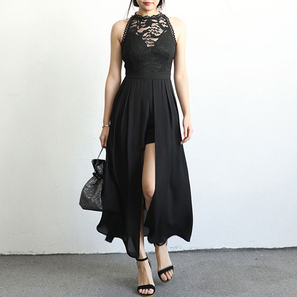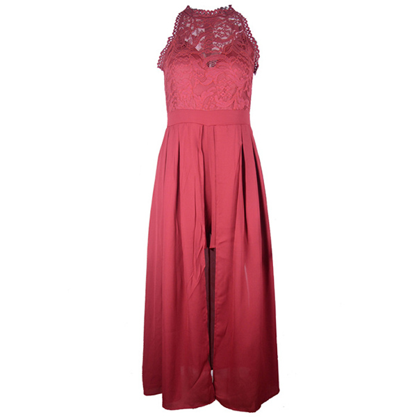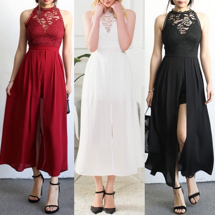 your ensemble. Solid color style,outfitted with sleeveless,high waist and lace spliced details,