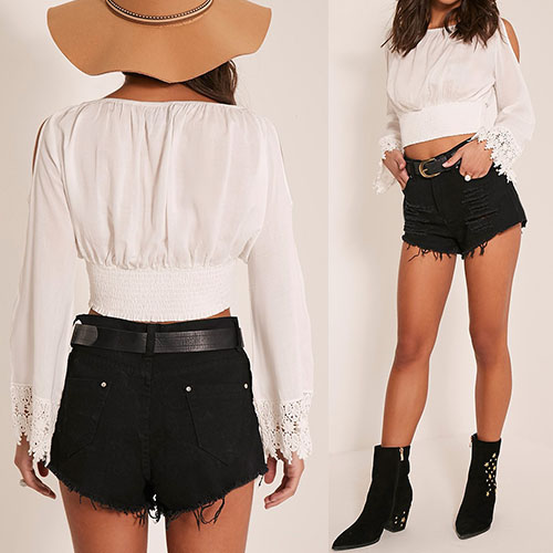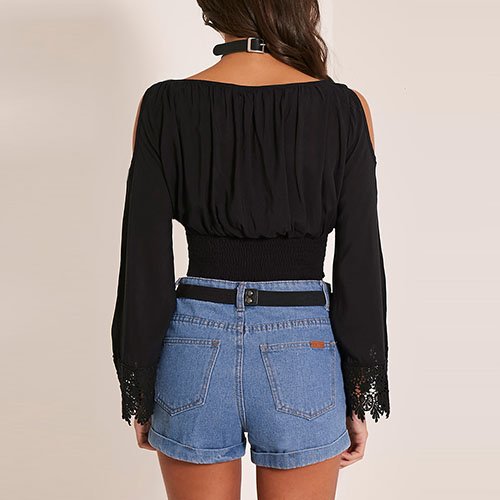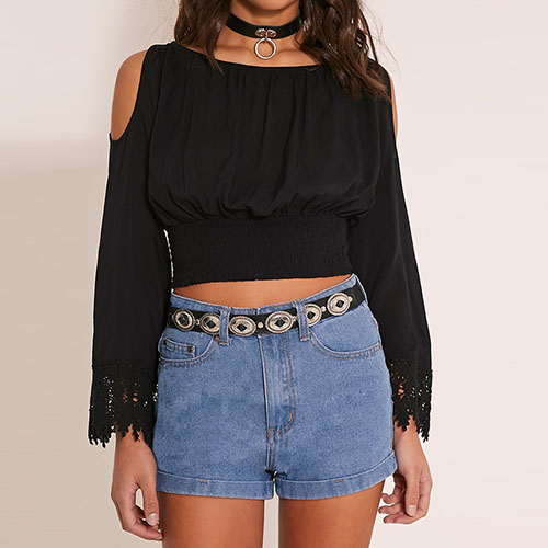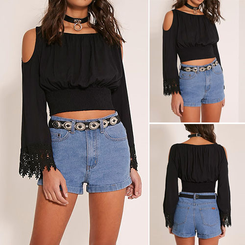 cold shoulder and navel exposed design, this piece is perfect for your holiday trip or romantic dating.