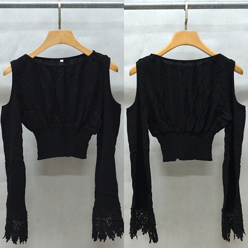 Cuff with lace spliced design, chic and stylish. Round neck construction, accompanied with long sleeve,