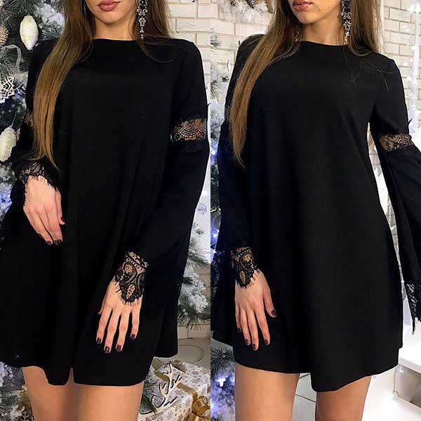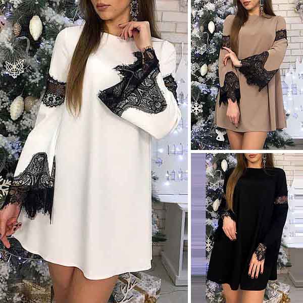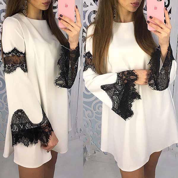 The lace spliced trumpet sleeve design is the highlight,which makes this piece look so appealing,while its