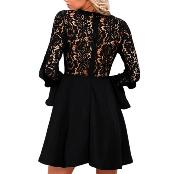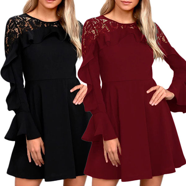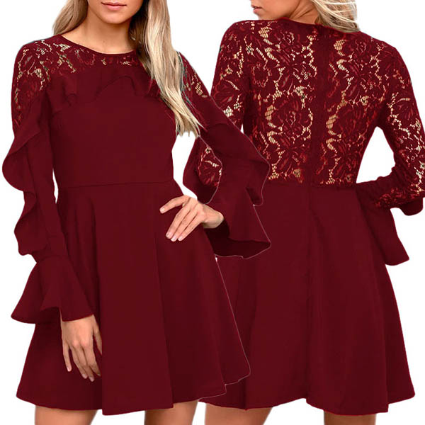 Solid color tone design aims to give you an elegant vibe,while the trumpet sleeve,lace spliced and ruffle
