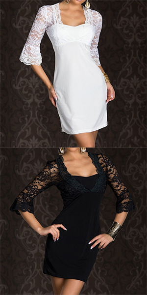 This dress features lace spliced style,with trumpet sleeve and collar deisgn,sexy and charming.