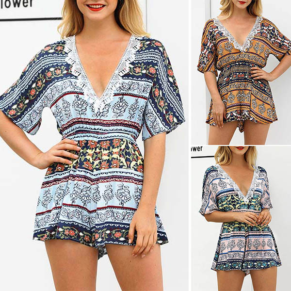 Except for dresses,this romper also can be your good choice in this summer season. Boasts chic printed pattern,