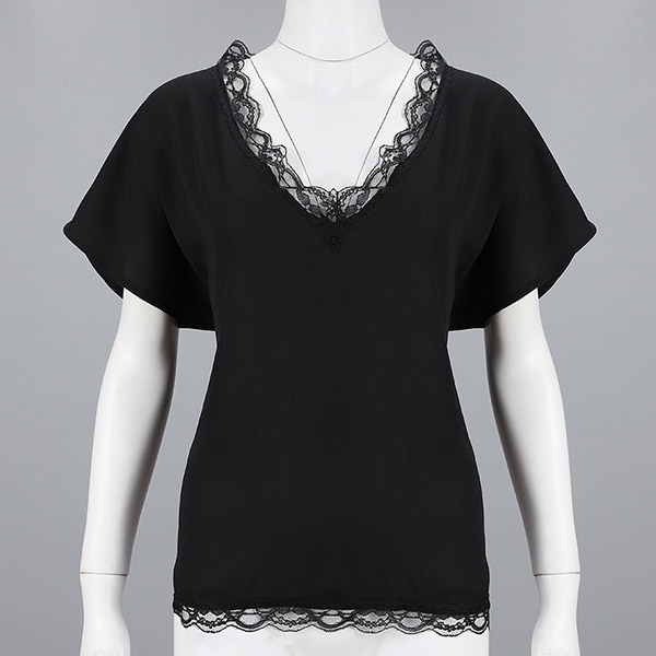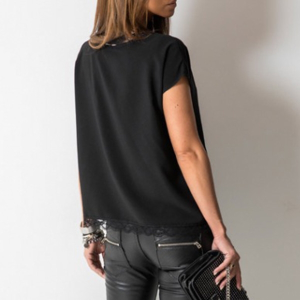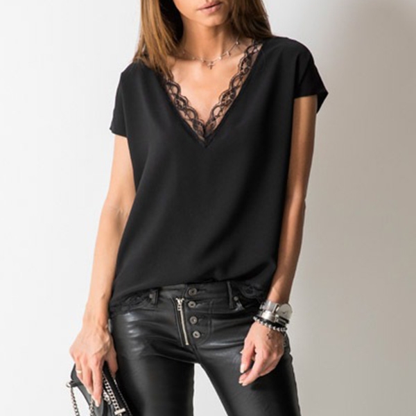 a flattering black tone,the v-neck and lace spliced details can offer you a more charming look.