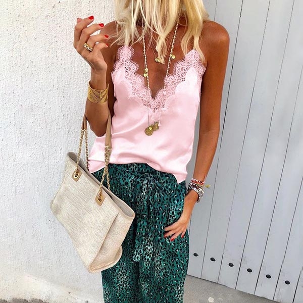 This cami top is perfect fit for these sun-soaked summer days. Solid color style,the lace spliced and v-neck