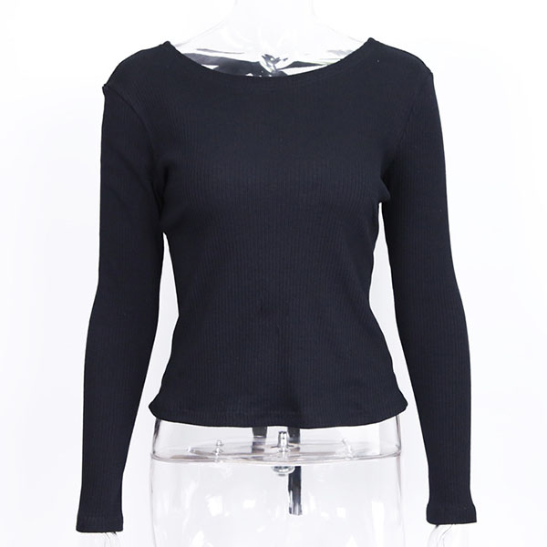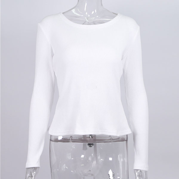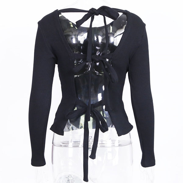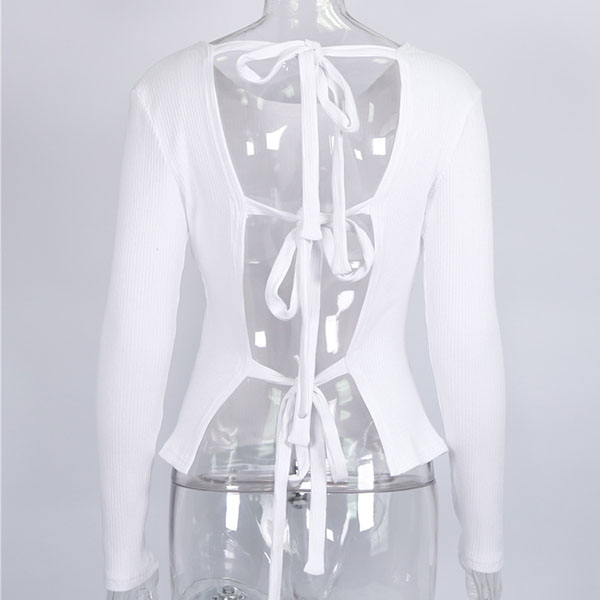 round neck,backless and lace-up design at back,this t-shirt is a perfect combination of simple and sexy flavor.