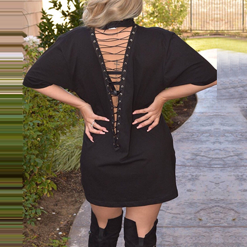 dress is crafted form soft and cozy fabric,with a relaxed fit silhouette,backside with lace-up backless