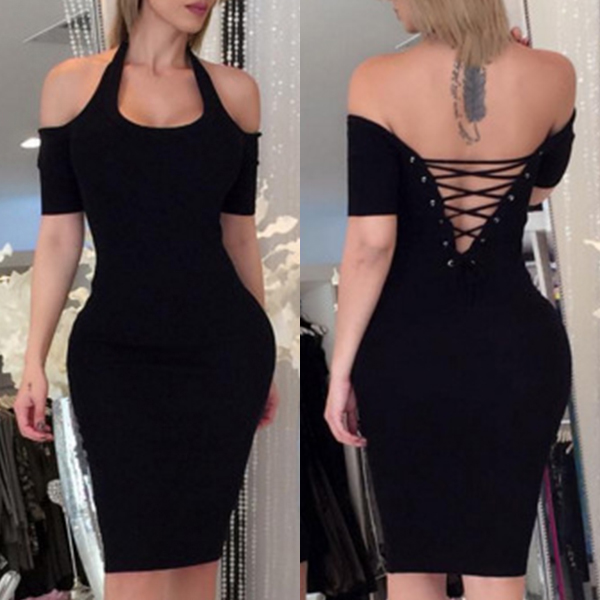 an elegant and noble vibe,while the off-shoulder and lace-up backless design make this piece look more alluring.