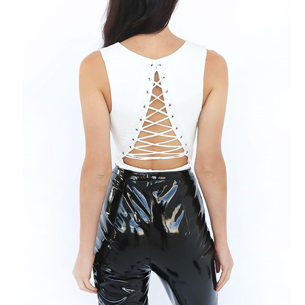 Sexy Lace-up Backless Sleeveless Round Neck Solid Color Bodysuit