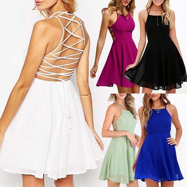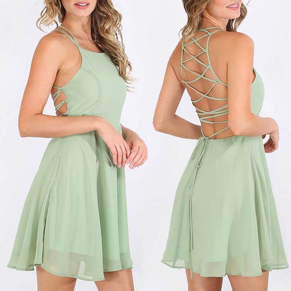 You can easily expose your charming skin through this dress. Sling,backless and lace-up details make