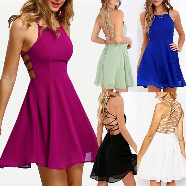 Look exceptionally stunning when you slip into this dress. Sling style,the backless and lace-up design at