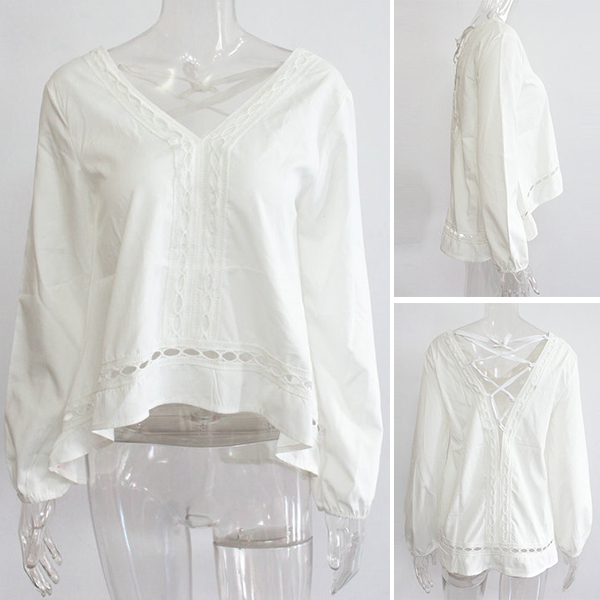 Expressing your fashion style is easy with this long sleeve top. Features a pure white color,designed with v-neck,high-low